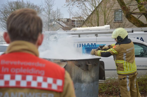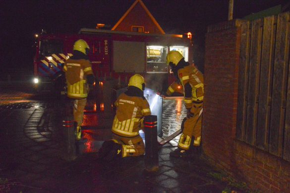 Brandweer blust nasmeulende afvalcontainer in Steenwijk