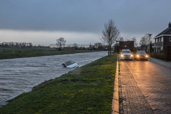 Steenwijk – Een auto is maandagochtend het water in gerold aan de Johan van Oldenbarneveltsingel in Steenwijk nadat de handrem…
