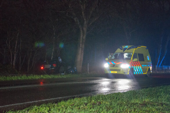 Auto ondersteboven op Steenwijkerweg nabij De Blesse