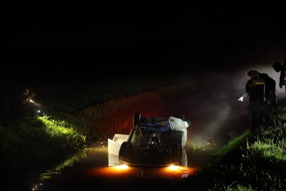 Auto op de kop in een sloot aan de Bulten Postweg bij Havelte
