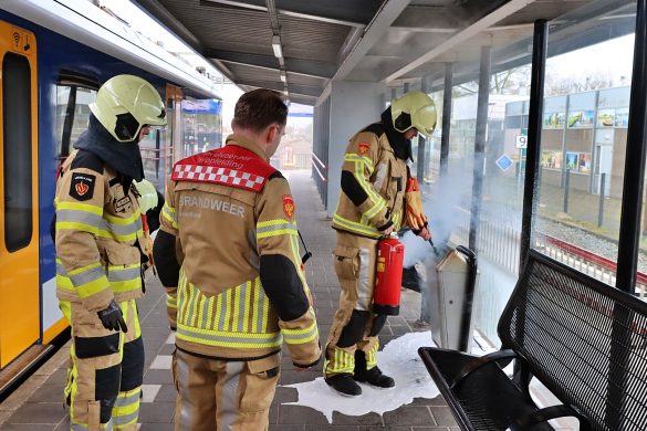 Afvalcontainer in brand op het NS station in Steenwijk