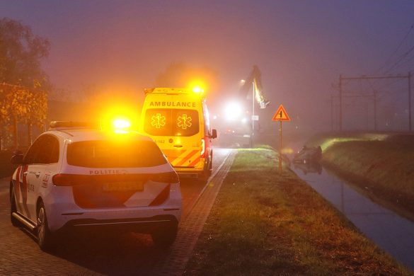 Auto in de sloot aan de Burgemeester Slompweg bij Zuidveen