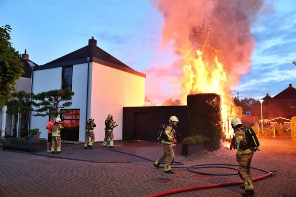 Bijgebouw in brand aan Stroomdal in Steenwijk, brandweer weet overslag naar woning te voorkomen.