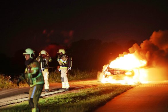 Zuidveen/Nijeveen – Op de provinciegrens van Overijssel en Drenthe is in de nacht van maandag op dinsdag een auto volledig…