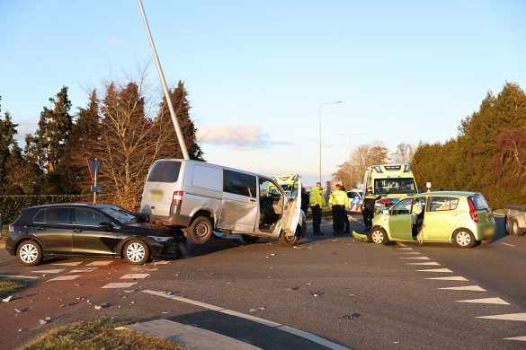 Bestelauto belandt op motorkap van auto bij ongeval Scheerwolde