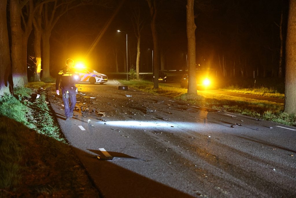 Door het ongeval lag de weg bezaaid met auto onderdelen. Gemeente Westerveld is in kennis gesteld om samen met het bergingsbedrijf de weg vrij te maken.