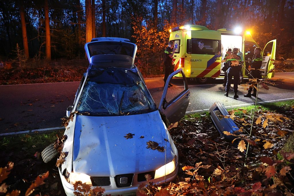Automobilist slaat met zijn auto over de kop op de Ruiterweg bij Darp