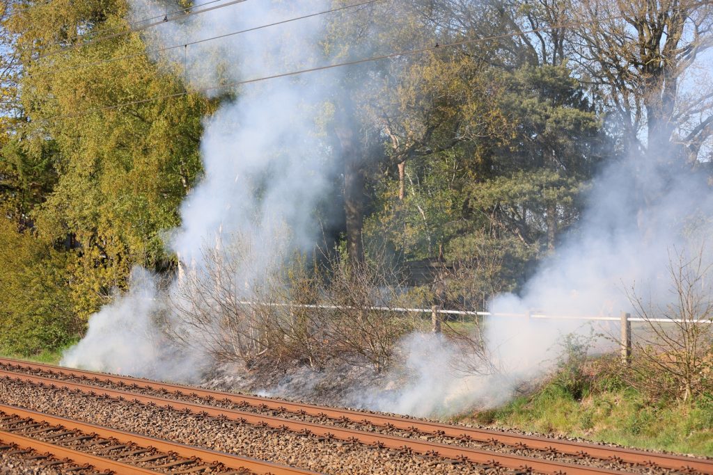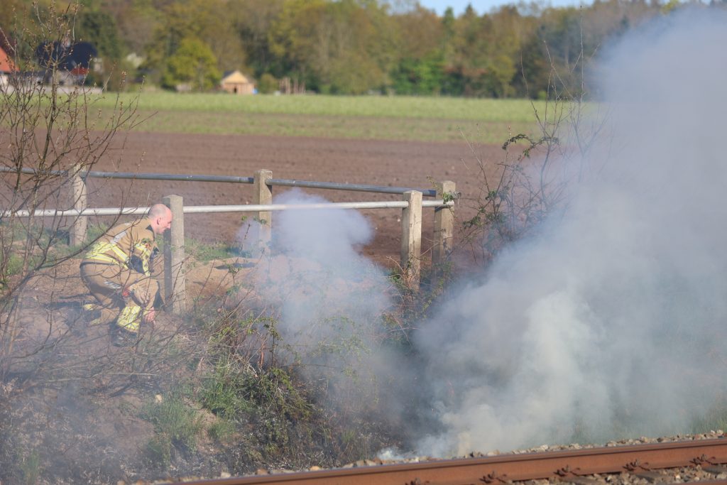 Onna – Een omwonende alarmeerde zondagmiddag even voor zes uur de brandweer toen hij een brand opmerkte langs het spoor bij Onna. Een bewoner was achterop zijn perceel in een vuurton hout aan het verbranden. Mogelijk zijn er brandende restanten op de grond terecht gekomen, waarna de berm en de bosschages langs het spoor vlam vatte.
