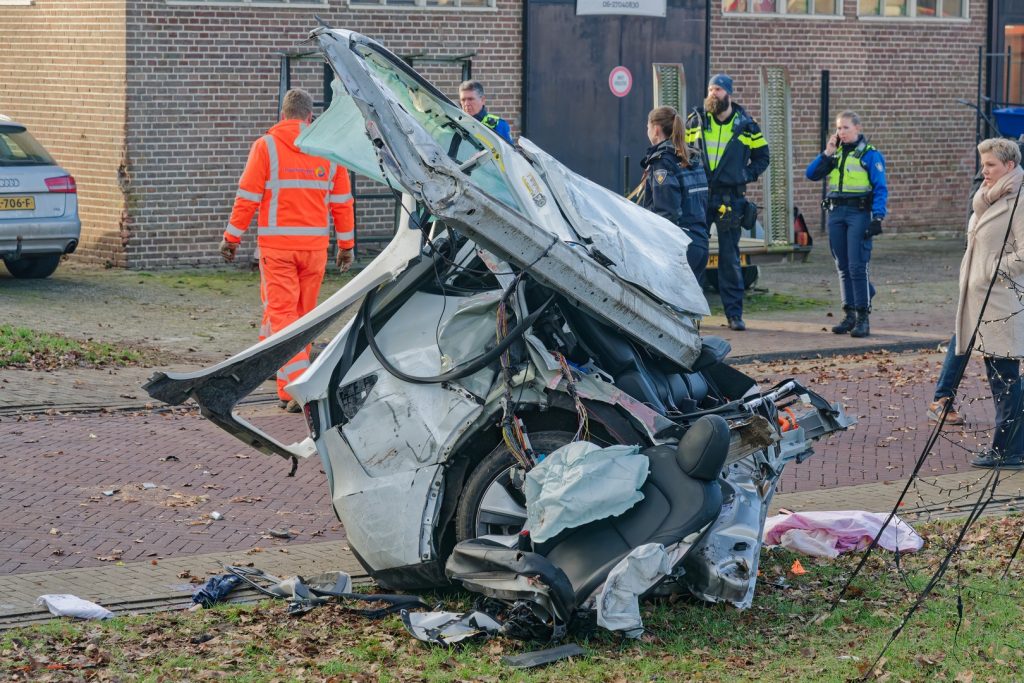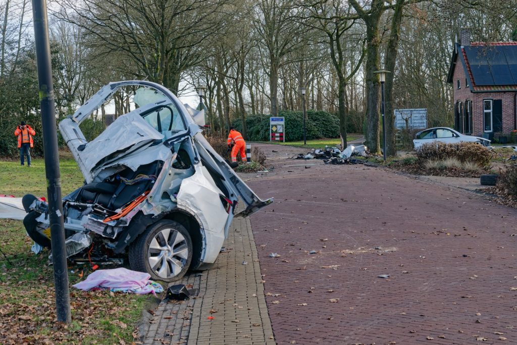 Diever – Dinsdagmiddag even na het middaguur heeft er op de Moleneinde in Diever een zeer ernstig eenzijdig ongeval plaatsgevonden. Een Tesla met twee inzittenden klapte met zeer hoge snelheid tegen een boom en brak vervolgens in tweeën.