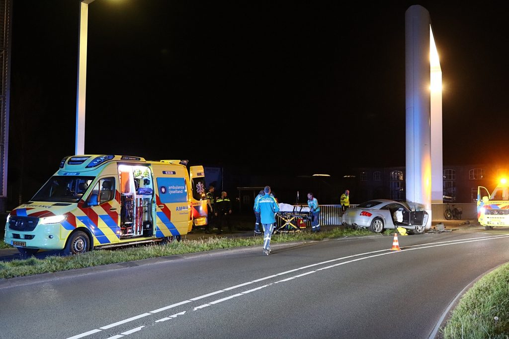 Een automobilist komende uit de richting van Steenwijk verloor de controle over zijn voertuig en botste tegen een pilaar van de Dolderbrug. Beide inzittenden raakte bij het ongeval gewond. In verband met mogelijk ernstig letsel kwam het mobiel medisch team met traumahelikopter ter plaatse. Beide slachtoffers zijn met onbekend letsel naar het ziekenhuis overgebracht.