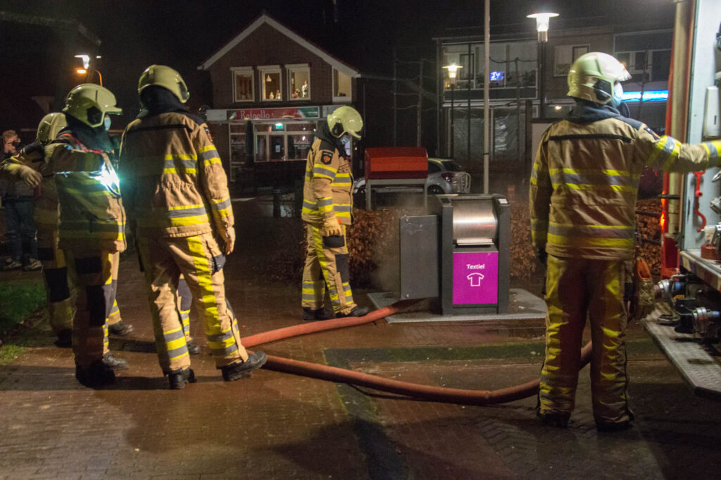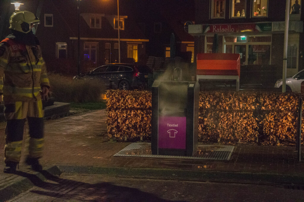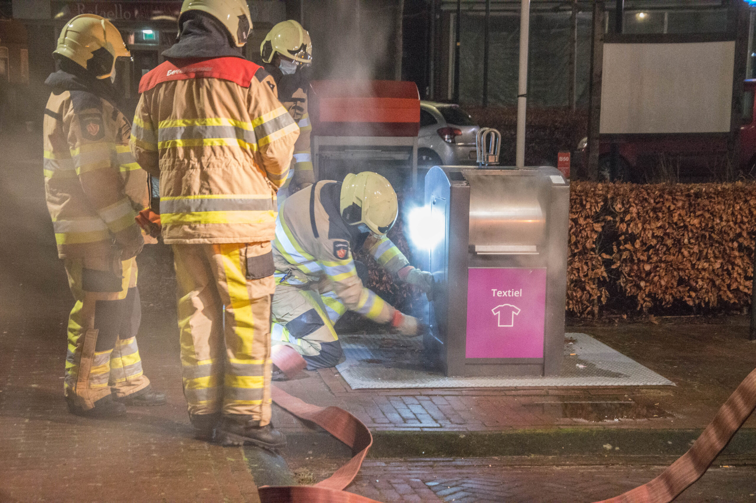 De inhoud van een ondergrondse textiel container was in brand gestoken waardoor er rook uit de container vrij kwam.