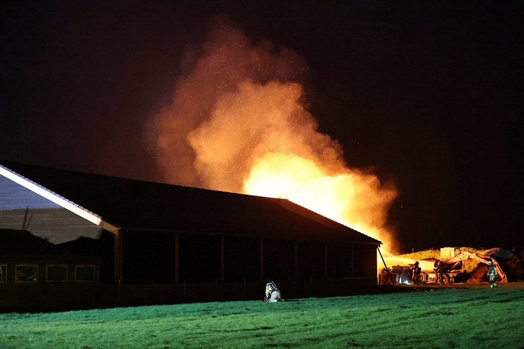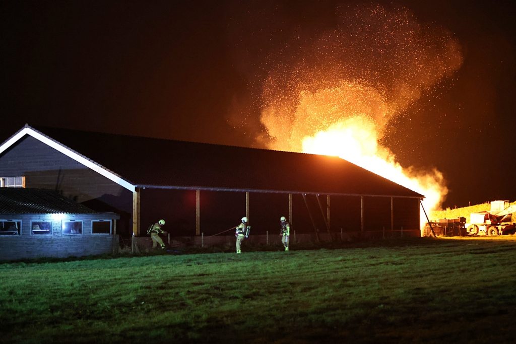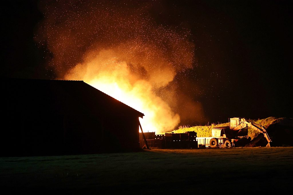 Bij aankomst van de brandweer van Steenwijk sloegen de metershoge vlammen goed om zich heen en trokken de rookwolken over de A32. De brandweer heeft vervolgens ingezet op het gecontroleerd laten uitbranden van de schuur en het behoud van een veel grotere nabij gelegen schuur.De brandweerlieden van het korps van Steenwijk kregen hierbij ondersteuning van het korps uit Oldemarkt en de waterwagens van Havelte en Meppel. Ze slaagde erin om overslag naar de ander schuur te voorkomen.